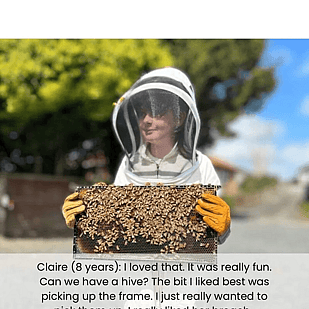 A fun, safe and hands-on experience where you’ll get up close with a working beehive. Perfect for families, small groups and curious beginners wanting to learn more about honeybees.