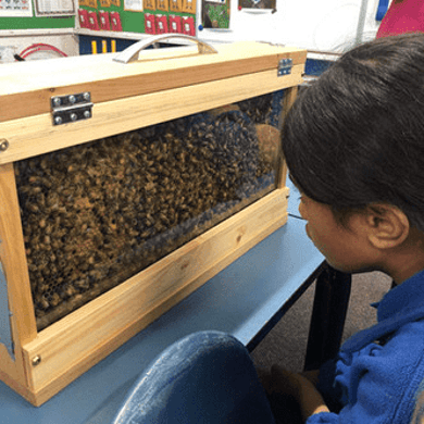 Live bees will be fully contained in an observation hive during all bee talks and education at schools.