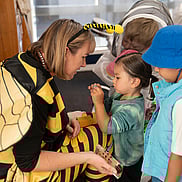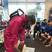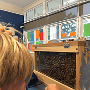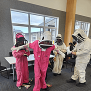 I offer a fully-contained live bee demonstration, complete with beesuits, bee tools and a beehive. You can expect an exciting hands-on experience as students observe bees up close, try on beesuits, and even handle a real-life beehive.